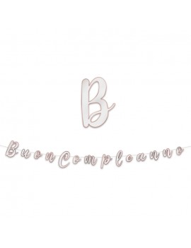 Festone Buon Compleanno Bianco/Rosa Italic 3 mt