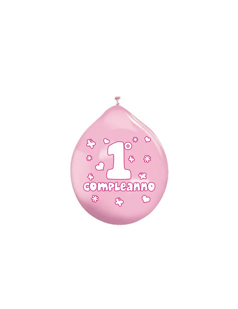 Palloncini in lattice 10" Primo Compleanno Rosa (20 pz - gonfiaggio aria)