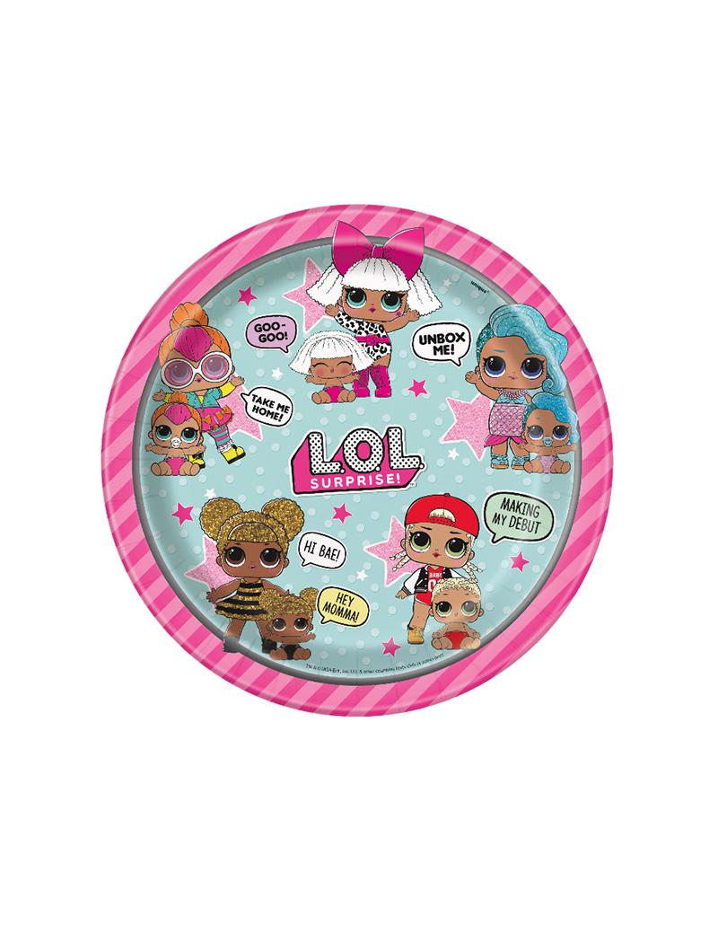 Piattini in carta per la tua festa a tema LOL Surprise. Fabbricati in cartoncino sono adatti a contenere cibi sia caldi che freddi.