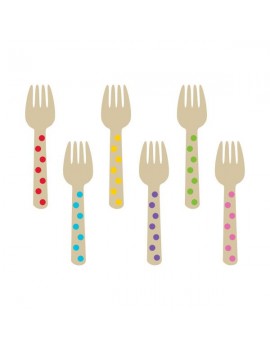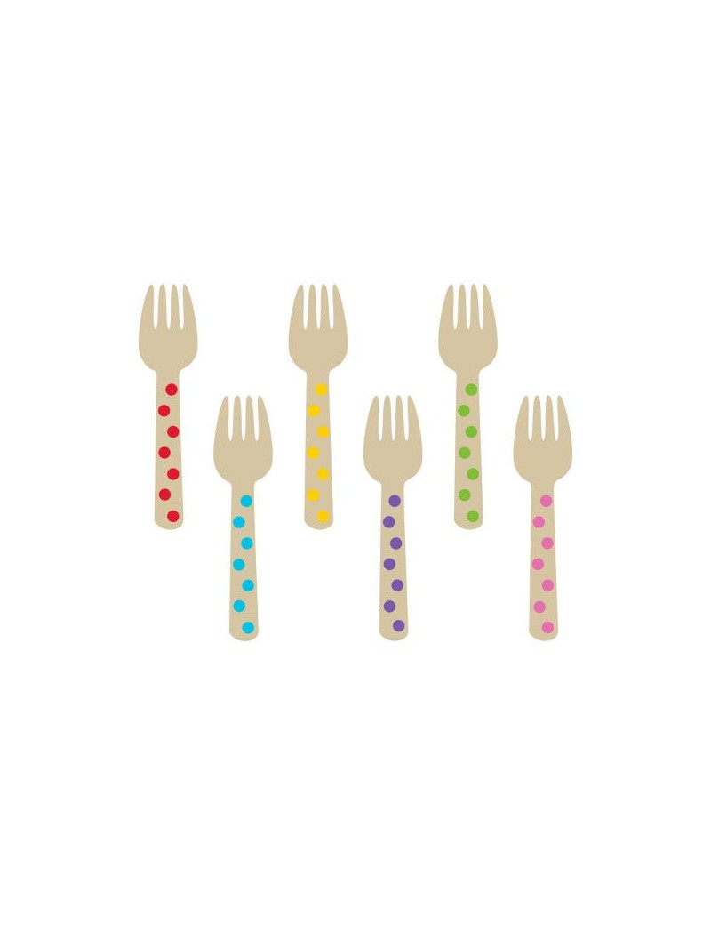 Informazioni: Confezione contenente 12 forchettine in legno a pois multicolor